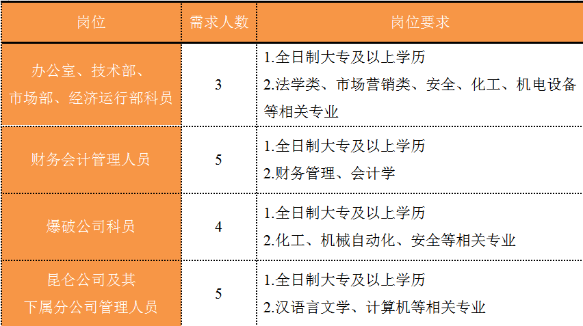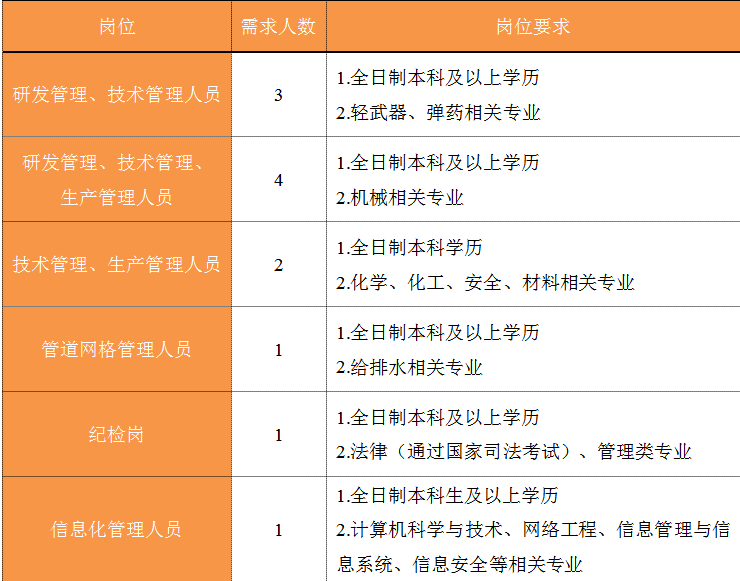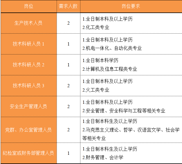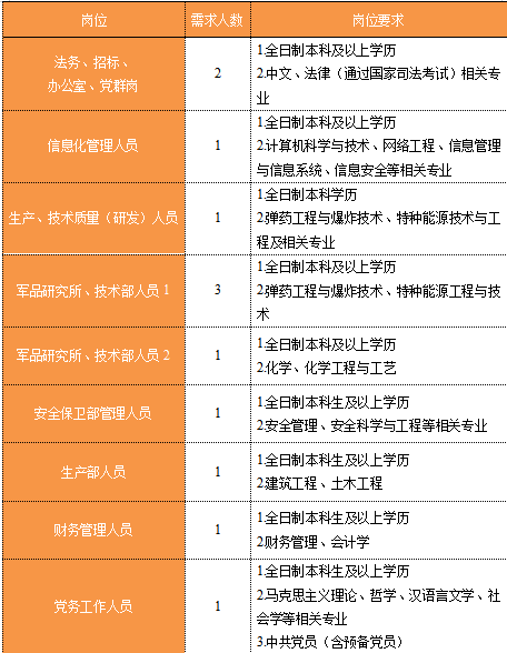 福建省機電(控股)有限責任公司(福建省國防科技工業公司)是由原省國防科工辦所屬企業為主,原省機械廳所屬企業劃入組建的省國資委出資的國有企業,現有全資、控股和參股企業22家。 在閩唯一一家地方軍工企業; 民爆物品生產與銷售資質、軍品科研與生產資質、硝酸銨生產與銷售資質、營業性爆破作業單位一級資質、礦山工程施工總承包一級資質、環保工程專業承包三級資質; 國家甲級設計院,擁有工業與民用建築工程設計、谘詢、工程監理等綜合資質; 華東地區最大的硝酸銨生產企業... 省級重點實驗室 1個 省級工程技術研究中心 2個 省級企業技術中心 3個 省級技能大師工作室 2個 五險二金 帶薪年假 工會福利 健康體檢 午餐補貼 通訊補貼 文體活動...... (一)基本條件 1.具有中華人民共和國國籍,擁護中國共產黨的領導,熱愛社會主義; 2.遵紀守法,無違法違紀違規等不良記錄; 3.具有良好的身體素質和心理素質; 4.具備符合崗位要求的文化程度和工作能力。 (二)資格條件 2024年應屆高校畢業生(含:①2024年當年度應屆高校畢業生,以畢業證書落款年度為準,已簽訂就業協議、勞動合同、繳交社保等均不影響應屆生身份人認定;②2023年度畢業、具有工作經曆及社保繳交記錄的高校畢業生),且在2024年1月1日至2024年12月31日期間取得學曆學位證書;2024年1月1日至2024年12月31日期間取得國(境)外學位、完成教育部留學服務中心學曆認證後初次就業的留學回國人員。 聯係人:蔣女士 聯係電話: 工作地點:福建福州 1.福建兵工裝備有限公司 聯係人:吳先生 聯係電話: 工作地點:福建永安、福建漳州 1.福建海峽科化股份有限公司分公司 聯係人:葉先生 聯係電話: 工作地點:福建永安、福建龍岩、福建福安、福建明溪 2.福建海峽科化富興建設工程有限公司 聯係人:楊女士 聯係電話: 工作地點:福建三明 3.福建民化建設工程有限公司 聯係人:鄒女士 聯係電話: 工作地點:福建省內 4.青海青樂化工機械有限責任公司 聯係人:李先生 聯係電話: 工作地點:青海省海東市樂都區 5.青海海西東諾化工有限公司 聯係人:郭先生 聯係電話: 工作地點:青海省德令哈市 聯係人:李女士 聯係電話: 工作地點:福建福州 本次招聘采用網上報名方式,符合崗位招聘條件的應聘者,請如實填寫《福建省機電(控股)有限責任公司公開招聘2024年應屆畢業生報名登記表》(點擊福建省機電(控股)有限責任公司公開招聘2024年應屆高校畢業生報名登記表.docx下載),並將報名登記表(PDF版)和個人簡曆(PDF版)統一打包壓縮後,投遞至指定郵箱:;並將郵件標題名稱命名為“崗位+姓名+畢業院校+專業” 即日起開始接受報名,截止時間為2024年7月31日。 招聘工作按照簡曆投遞-資格審查篩選-筆試-麵試-發放OFFER-體檢-公示-簽約錄用等程序進行。 資格審查貫穿招聘全過程,在招聘各環節若有發現報考信息不實、條件不符等情形的,一律取消應聘資格,不得進入下一環節;已經錄用的,我司有權解除勞動關係,由此發生的個人損失由應聘人員自行承擔。 按(an)照(zhao)招(zhao)聘(pin)條(tiao)件(jian)對(dui)應(ying)聘(pin)人(ren)員(yuan)進(jin)行(xing)資(zi)格(ge)審(shen)查(zha),擇(ze)優(you)確(que)定(ding)參(can)加(jia)筆(bi)試(shi)和(he)麵(mian)試(shi)人(ren)員(yuan)。審(shen)核(he)通(tong)過(guo)者(zhe)將(jiang)通(tong)過(guo)電(dian)話(hua)或(huo)郵(you)件(jian)方(fang)式(shi)通(tong)知(zhi),審(shen)核(he)未(wei)通(tong)過(guo)者(zhe)不(bu)再(zai)另(ling)行(xing)通(tong)知(zhi)。 公開招聘工作堅持“公開、平等、競爭、擇優”的原則,嚴肅紀律,秉公辦事,嚴禁弄虛作假,徇私舞弊,全程接受紀檢監察部門和社會的監督。報考者有弄虛作假、違紀違規行為的,一經發現,均取消其應聘資格,並將有關情況通報其所在學校或單位。構成犯罪的,依法追究刑事責任。