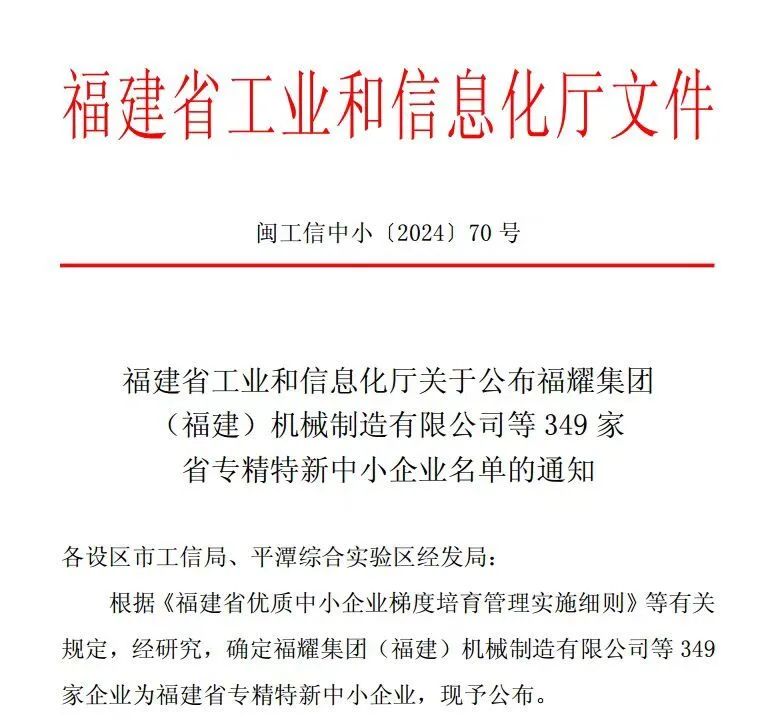 省機電控股公司多家權屬企業被確定為福建省“專精特新”中小企業