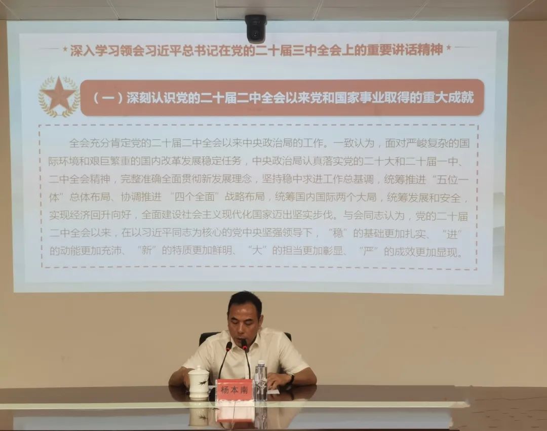 近日,公司黨委委員、宣講團成員楊本南到機電沿海設計院公司宣講黨的二十屆三中全會精神,機電沿海設計院公司領導班子成員、中層幹部、支部委員和控股公司機關三支部全體黨員等共30餘人聆聽宣講。 楊本南緊緊圍繞習近平總書記在黨的二十屆三中全會上的重要講話,深入淺出地闡釋了進一步全麵深化改革的指導思想、總目標和重大原則;對《決定》提出的重要改革創新舉措進行重點解讀,為與會人員上了一堂生動而富有啟發性的輔導課。 楊本南要求:一(yi)要(yao)全(quan)麵(mian)做(zuo)好(hao)全(quan)會(hui)精(jing)神(shen)學(xue)習(xi)宣(xuan)傳(chuan)貫(guan)徹(che)。學(xue)習(xi)宣(xuan)傳(chuan)貫(guan)徹(che)黨(dang)的(de)二(er)十(shi)屆(jie)三(san)中(zhong)全(quan)會(hui)精(jing)神(shen)是(shi)當(dang)前(qian)和(he)今(jin)後(hou)一(yi)個(ge)時(shi)期(qi)的(de)重(zhong)大(da)政(zheng)治(zhi)任(ren)務(wu)。要(yao)充(chong)分(fen)利(li)用(yong)各(ge)類(lei)宣(xuan)傳(chuan)平(ping)台(tai),全(quan)方(fang)位(wei)、多角度、立體化地開展宣傳,引導全體黨員幹部職工把思想和行動統一到全會精神上來。 二要加強黨對進一步全麵深化改革全過程的領導。要充分發揮公司黨委在改革工作全局中的統領作用,堅持把方向、管大局、保落實,引導推動黨員幹部打破思維定式和路徑依賴,做到敢打頭陣、爭創一流,紮實推動改革提質擴麵增效。 sanyaoyidingdingzijingshenzhuahaogaigerenwudeluoshi。yaochitougaigeyaoqiu,jujiaozhuzezhuye,tuidongkejichuangxinhechanyechuangxinshenduronghe,qieshijiangquanhuijingshendeguancheluoshichengxiaozhuanhuaweizhutuigongsigaozhiliangfazhandeshengdongshijian。